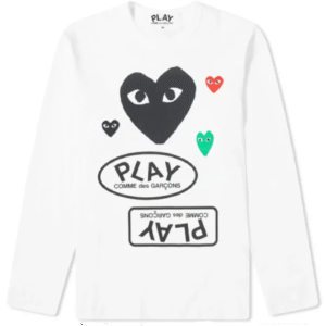 The CDG Play Multi Red Heart Long sleeve T-Shirt White is a modern staple that blends casual streetwear with timeless elegance. Designed by Comme des Garçons, this piece features the brand’s iconic multi-heart motif, giving it a playful yet stylish edge. Crafted from premium soft cotton, it provides exceptional comfort while maintaining a structured fit. The clean white base allows the vivid red heart logos to stand out, making it a versatile addition to any wardrobe.