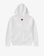 CDG Play Unisex Reverse Red Heart Zip Hooded White is a stylish and versatile hoodie designed for fashion-forward individuals who value both comfort and trend. Crafted with premium materials, this hoodie offers a soft, durable, and cozy feel, making it perfect for everyday wear or layering in colder weather. Its unisex design ensures a perfect fit for everyone, blending casual streetwear aesthetics with a touch of luxury.
