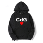 Crafted from premium quality cotton, this hoodie provides all-day warmth and softness without compromising breathability. The adjustable drawstring hood and ribbed cuffs offer a snug, tailored fit, while the kangaroo pocket adds both function and flair. Whether you’re strolling through the city or relaxing on the weekend, the CDG Red Heart Front Print Hoodie guarantees unmatched comfort and modern appeal.